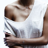 The delicate and elegant Full Circle Bracelet is is part of the Peacebomb collection from Article 22 and the perfect accompaniment to the Full Circle Necklace.  The circle talisman is hand poured and cast of Peacebomb metal and then set on a 7" rose gold chain, adjustable to 5.75".  Each purchase of the Full Circle Bracelet includes a donation to de-mine 6 square meters of littered land in Laos.